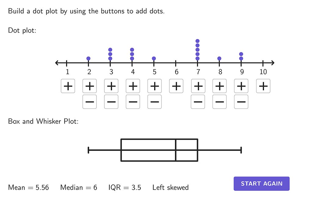 Explore representations of data from interviews in dot plots, tables, and associated values in this activity.