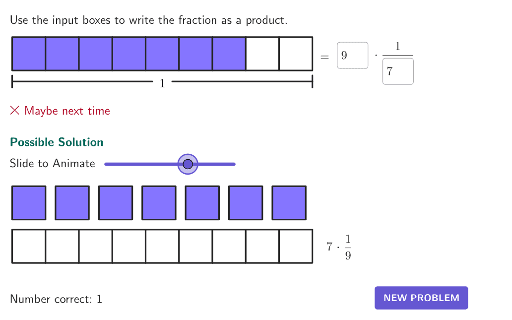 Multiply mixed numbers with an area model and an interactive solution.