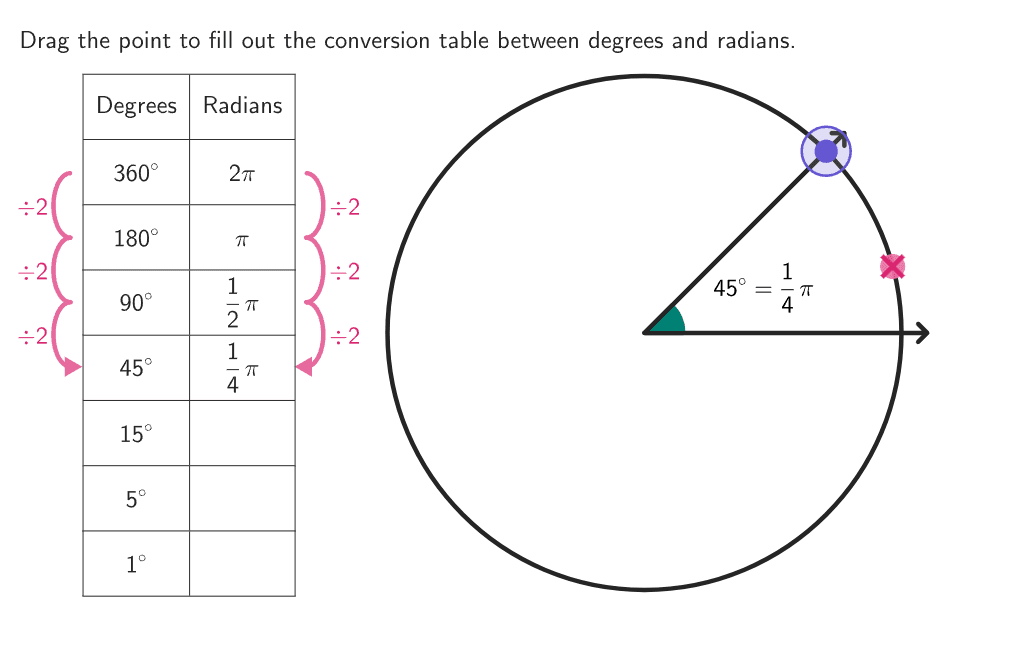 Draw angles using radians as accurately as you can and improve your angle sense in this interactive game.