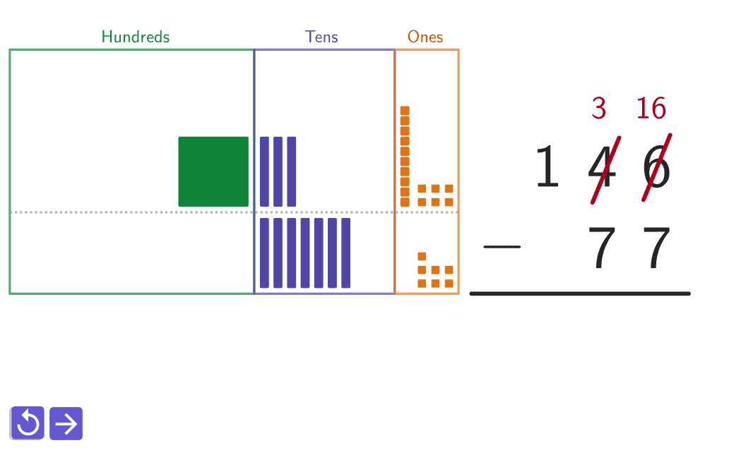 Subtract 2- and 3-digit numbers with and without models for number and word problems that require regrouping.
