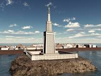 Александрийский маяк. Маяк был построен на маленьком острове Фарос в Средиземном море, около берегов Александрии. Этот оживленный порт основал Александр Великий во время посещения Египта. В основании он был квадратом со стороной тридцать метров, первый 60 -метровый этаж башни был сложен из каменных плит и поддерживал 40-метровую восьмигранную башню, облицованную белым мрамором.