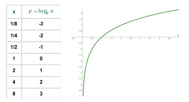 Las funciones y=2x y y=log2x son funciones inversas una de la otra, por tanto, la gráfica de y=log2 x es una reflexión de la gráfica de y=2x sobre la recta y=x. El dominio de y=2x es el conjunto de los números reales y el recorrido es todos los números reales mayores que cero. El dominio de y=log2 x es el conjunto de los números reales mayores que cero y el recorrido el conjunto de los números reales.