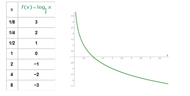Las funciones y= bx y y = logb x para b>0 y b diferente de uno son funciones inversas. Así que la gráfica de y = logb x es una reflexión sobre la recta y = x de la gráfica de y = bx. La gráfica de y = bx tiene comoasíntota horizontal al eje de x mientras que la gráfica de y = logb x tiene al eje de y como asíntota vertical.