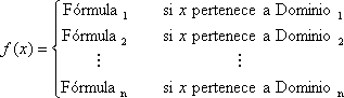 - Subconjunto1, Subconjunto2, Subconjunton : Son los intervalos de números reales para los cuales está definida esa rama. Deben expresar un rango de valores disjuntos de la variable independiente x. Dicho de otra manera, un valor de x no puede estar en dos ramas distintas
