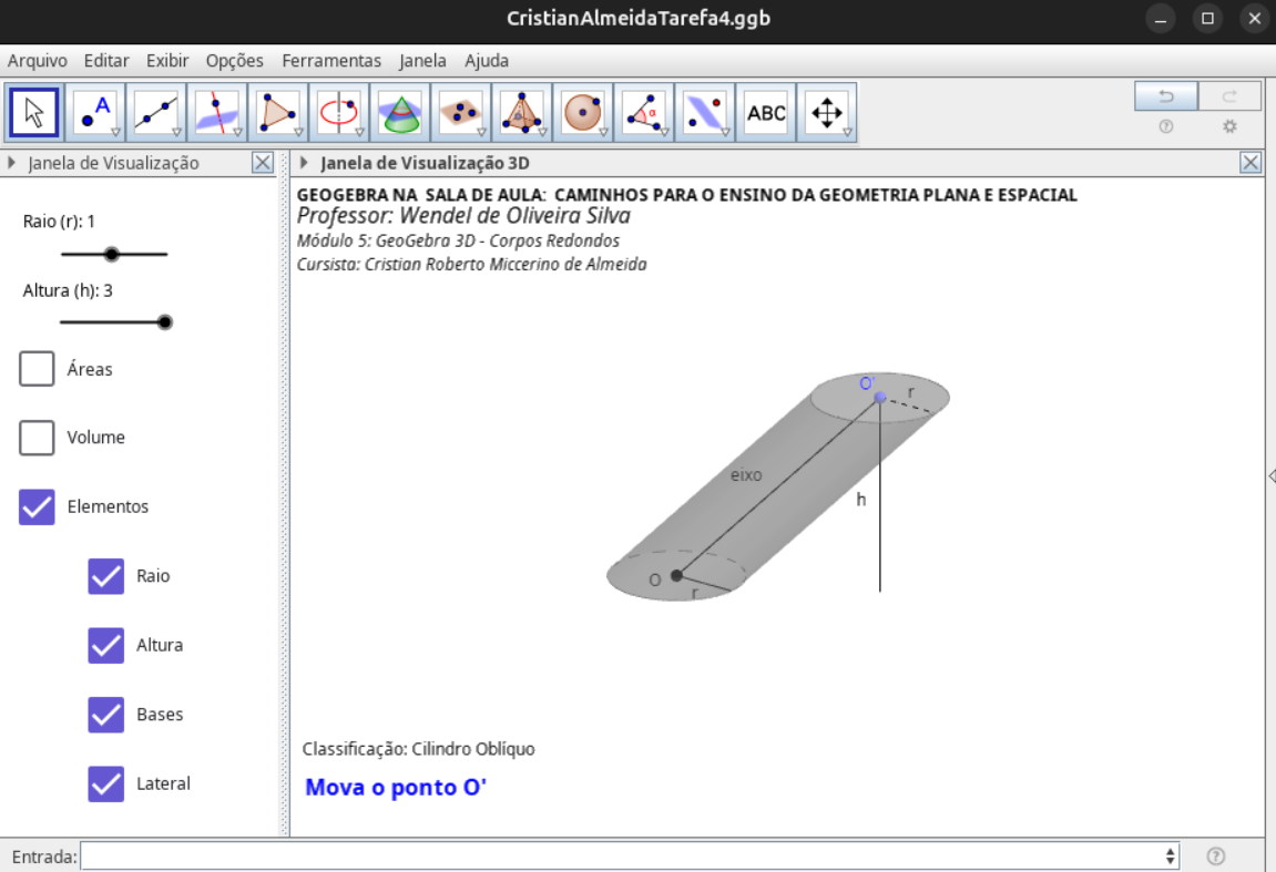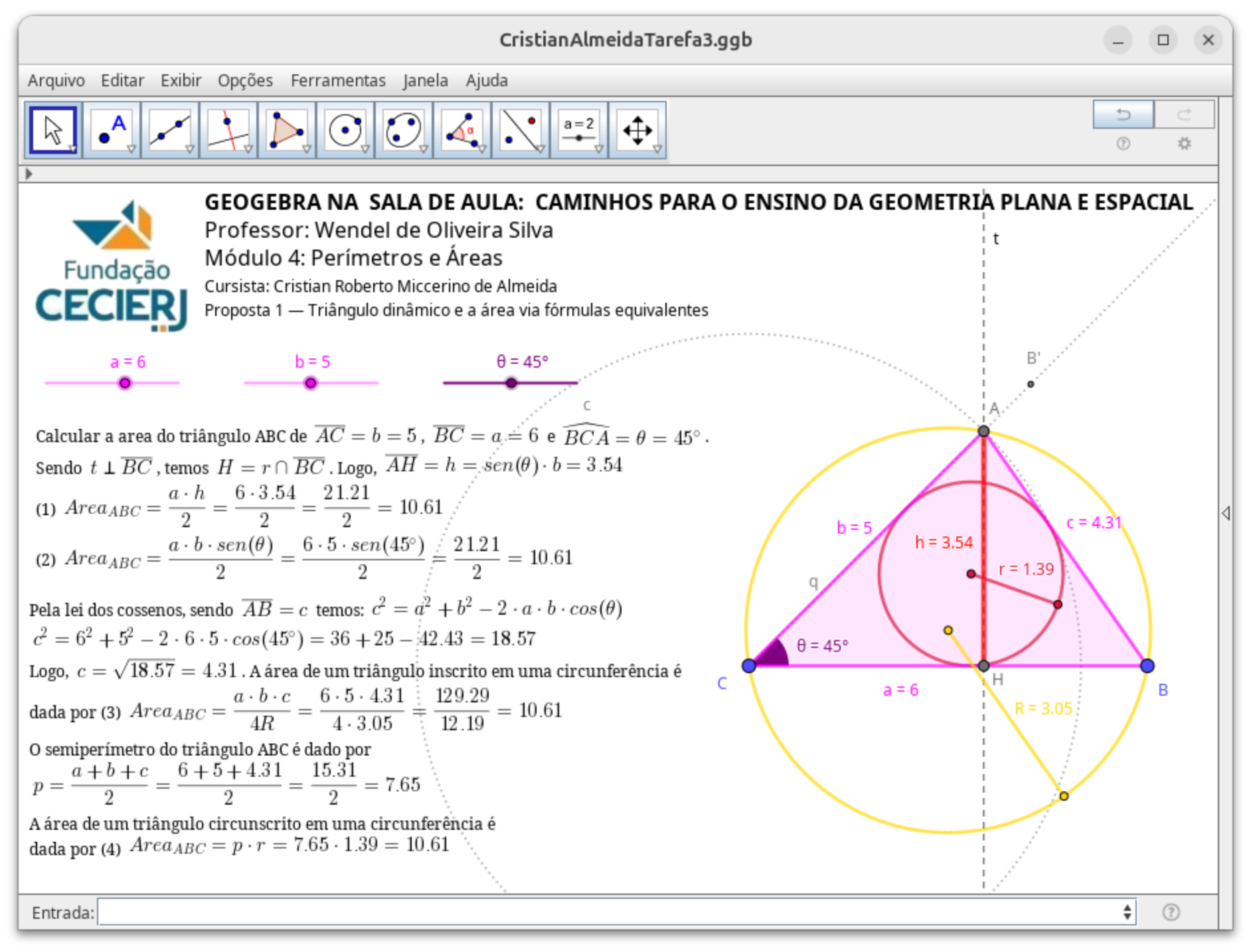 Tarefa 3 - Triângulo dinâmico e a área via fórmulas equivalentes (Proposta 1)