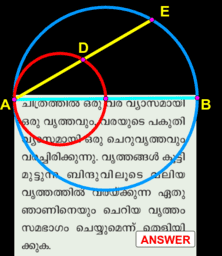 6)വ്യാസത്തിന്റെ അഗ്രബിന്ദുക്കൾ വൃത്തത്തിനു പുറത്തുണ്ടാക്കുന്ന കോണിന്റെ അളവ് (proof)
